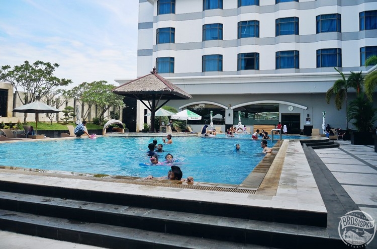 Fasilitas kolam renang ini berada di bagian luar restoran. Tidak hanya untuk tamu hotel, Sky Pool juga terbuka untuk umum. Boleh diakses dari jam 7 pagi sampai dengan jam 8 malam. HTM-nya